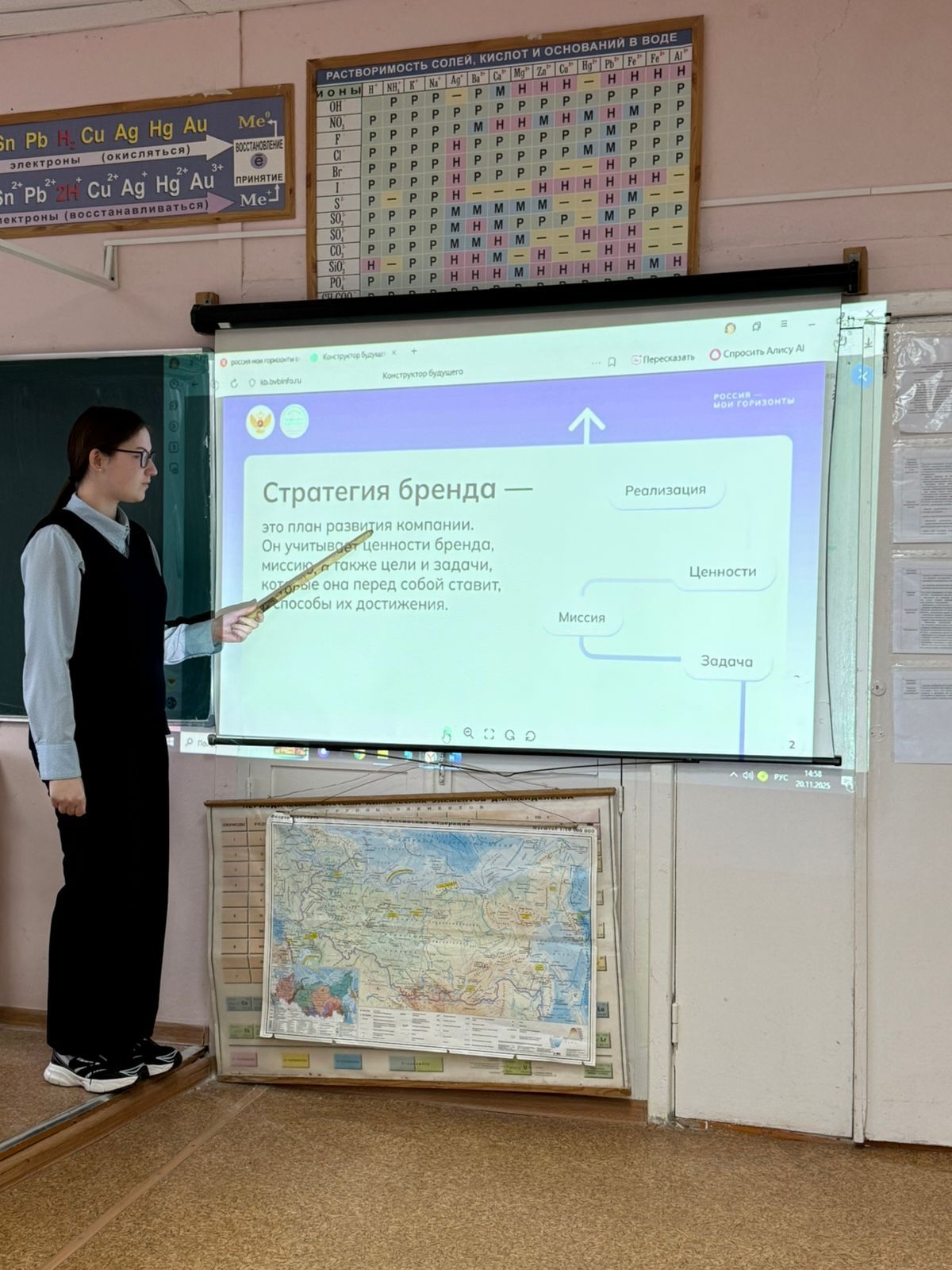 В ходе занятия учащиеся обсудили, почему лёгкая промышленность является важной отраслью для страны, за счет чего развивается легкая промышленность, и обозначили, какие перспективы ждут эту отрасль. Поработали в группах по созданию стратегий модных брендов лёгкой промышленности и предложили варианты концепций по развитию инноваций в текстильной компании. Познакомились с профессиями отрасли и посмотрели видеоролики по теме. Обсудили, какими качествами и способностями должны обладать люди этой сферы.