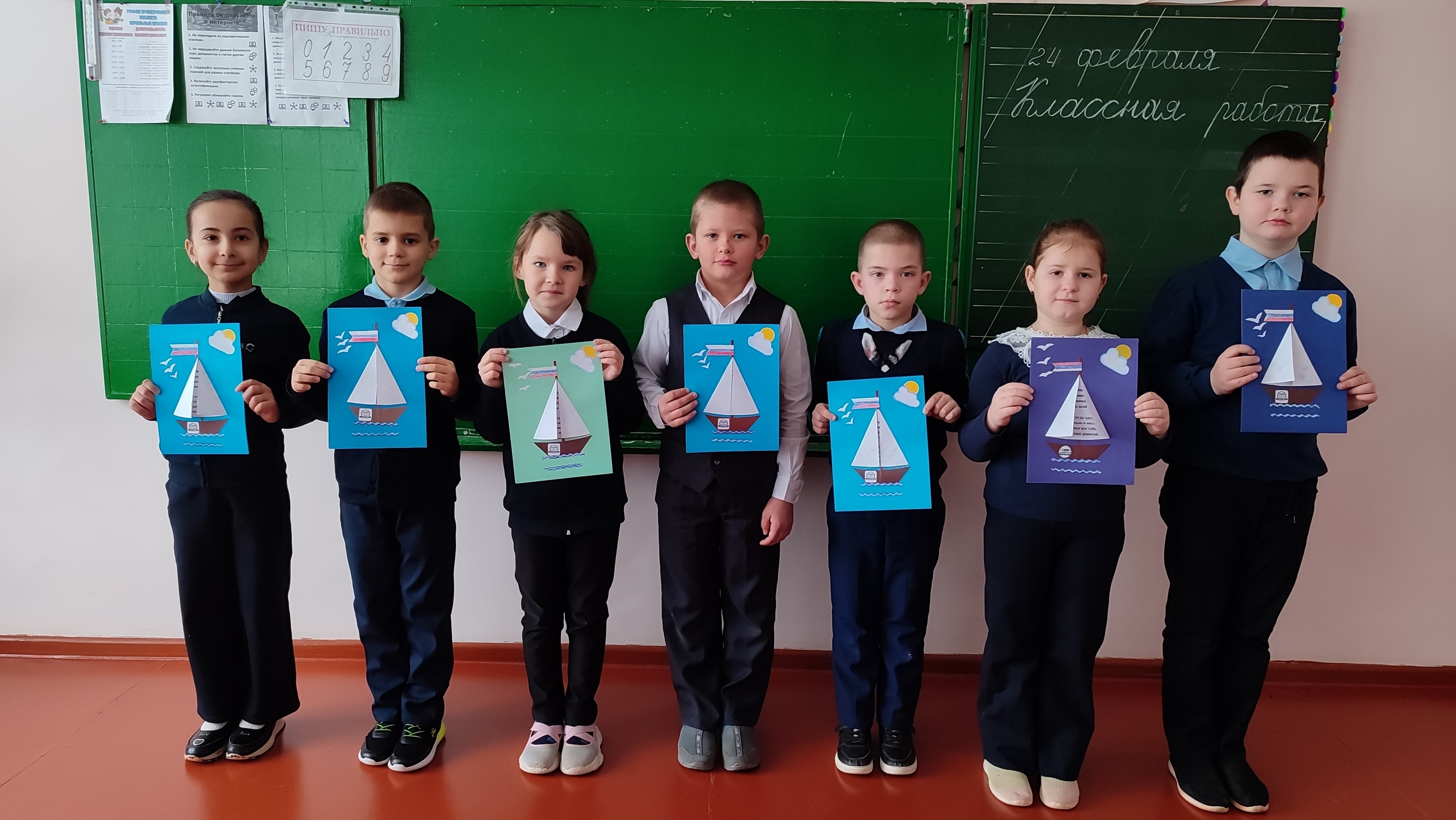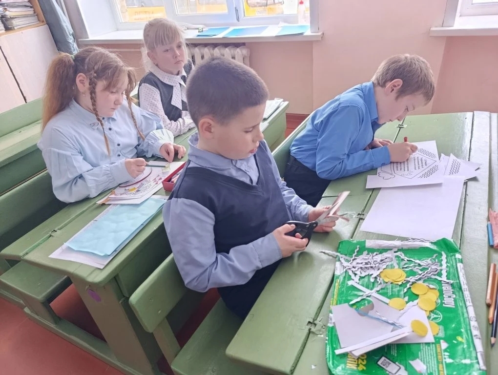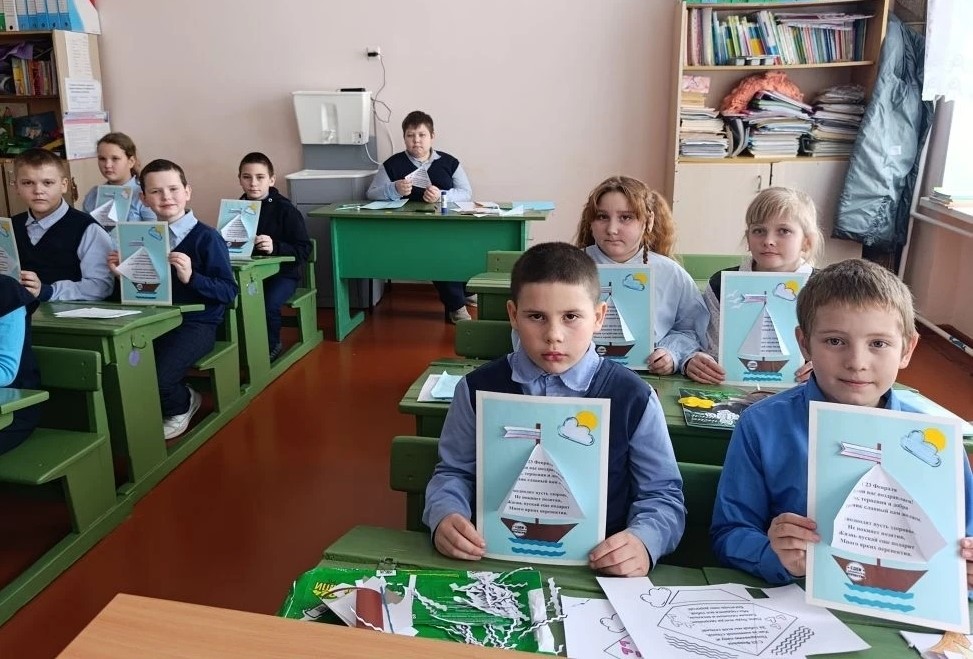 Под руководством классных руководителей Пикаловой Е.Е, Прохоровой В.В. и Медведевой Л.А. школьники своими руками изготовили праздничные открытки с тёплыми словами и пожеланиями к 23 февраля. Ребята проявили фантазию и креативность. Каждая открытка - это не просто бумага с рисунком, а настоящая душевная искра, полная тепла и заботы. Школьники рисовали патриотические символы и писали добрые слова, выражая благодарность всем защитникам нашей Родины.