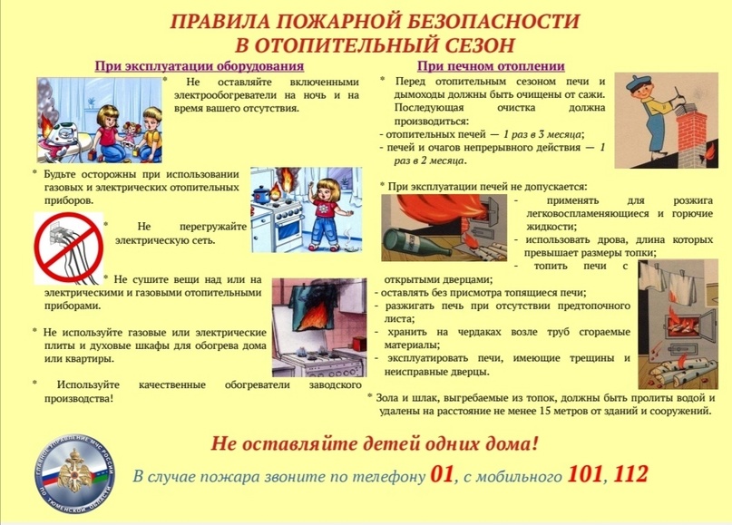 В целях недопущения и предотвращения возможных пожаров в осенне-зимний период времени необходимо выполнять следующие элементарные правила пожарной безопасности: