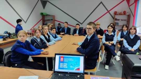 30 сентября мы отмечаем новый для нашей страны праздник – День воссоединения Донецкой Народной Республики, Луганской Народной Республики, Запорожской области и Херсонской области с Россией. Этот день для всего населения России навсегда станет днём правды, справедливости и объединения. В рамках празднования этой даты, советником директора по воспитанию, для обучающихся была проведена лекция «Возвращение в состав России: сила единства». Дети узнали о том, как произошло воссоединение с Россией осенью 2022 года, какой трудный путь прошли жители регионов, отстаивая свое право говорить на русском языке, добиваясь независимости и признания.