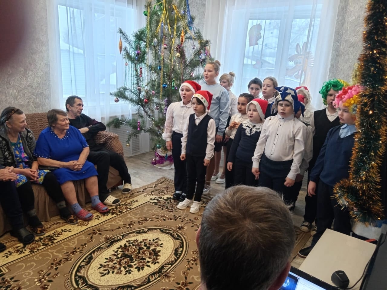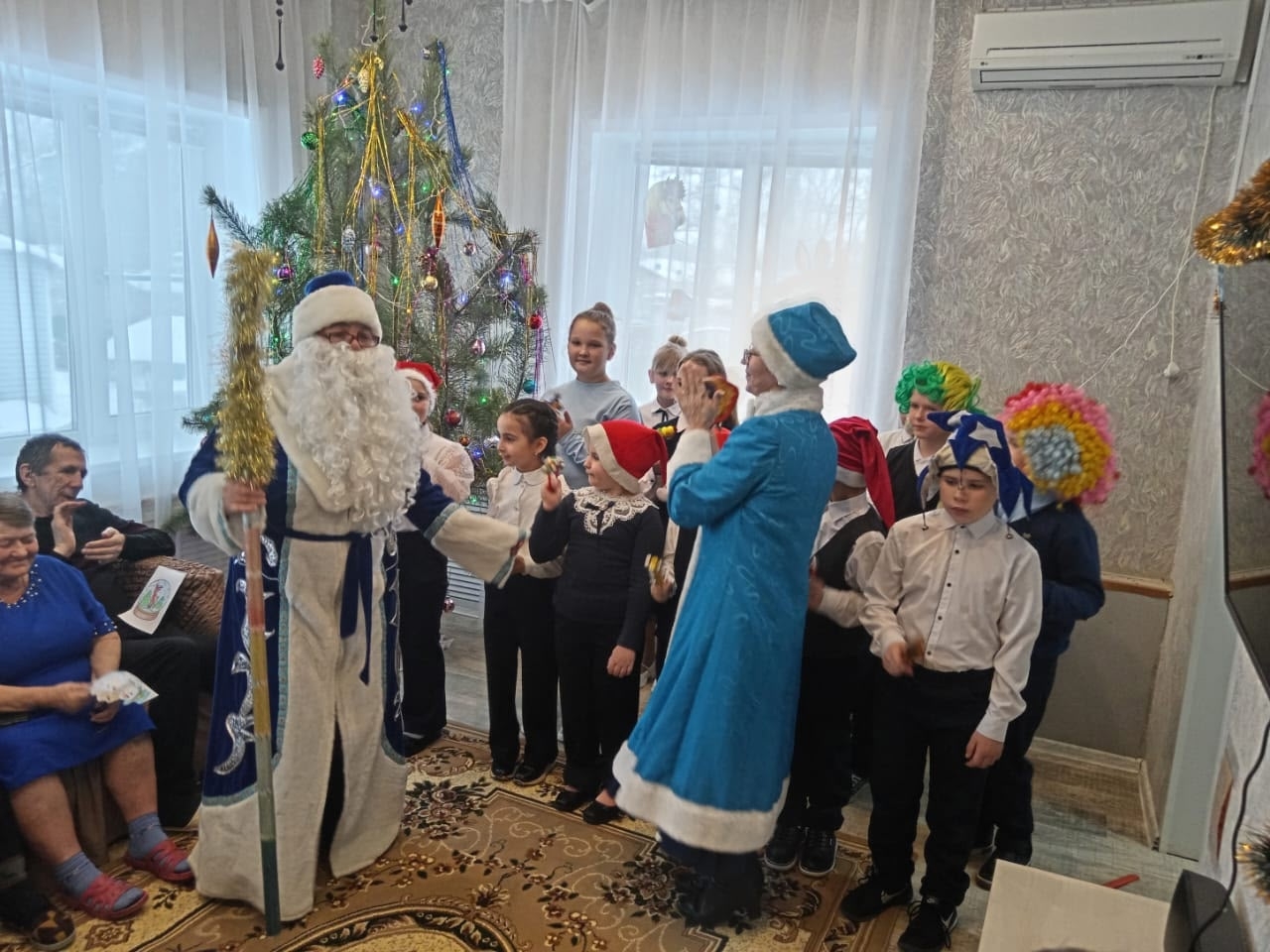 В рамках программы была представлена концертная программа, включающая новогодние песни, стихи и танцевальные номера, подготовленные детьми. Дед Мороз и Снегурочка поздравили присутствующих с наступающим Новым годом. Каждый ребенок вручил ветеранам поздравительные открытки, изготовленные своими руками.