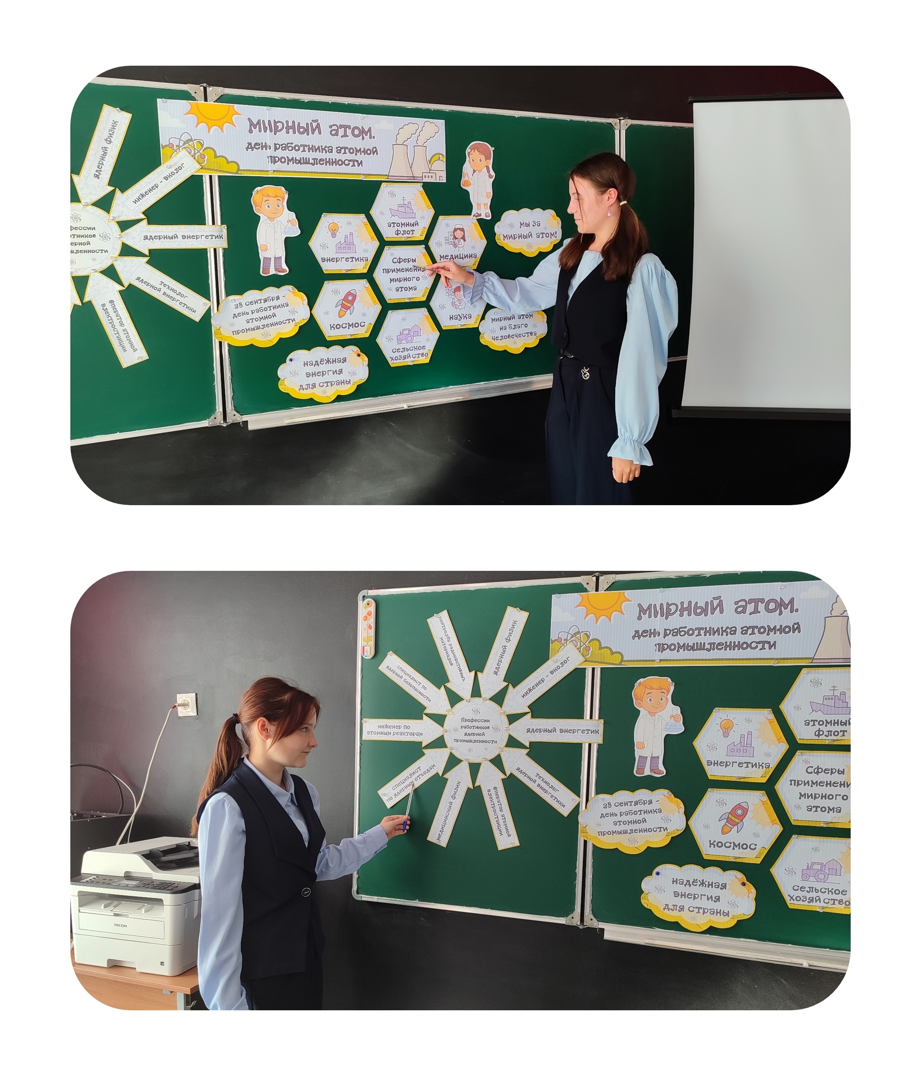 Затем состоялся очередной урок из цикла «Разговоры о важном». Он прошел в преддверии Дня работников атомной промышленности. Его посвятили развитию атомной отрасли в нашей стране и такому понятию, как «мирный атом».