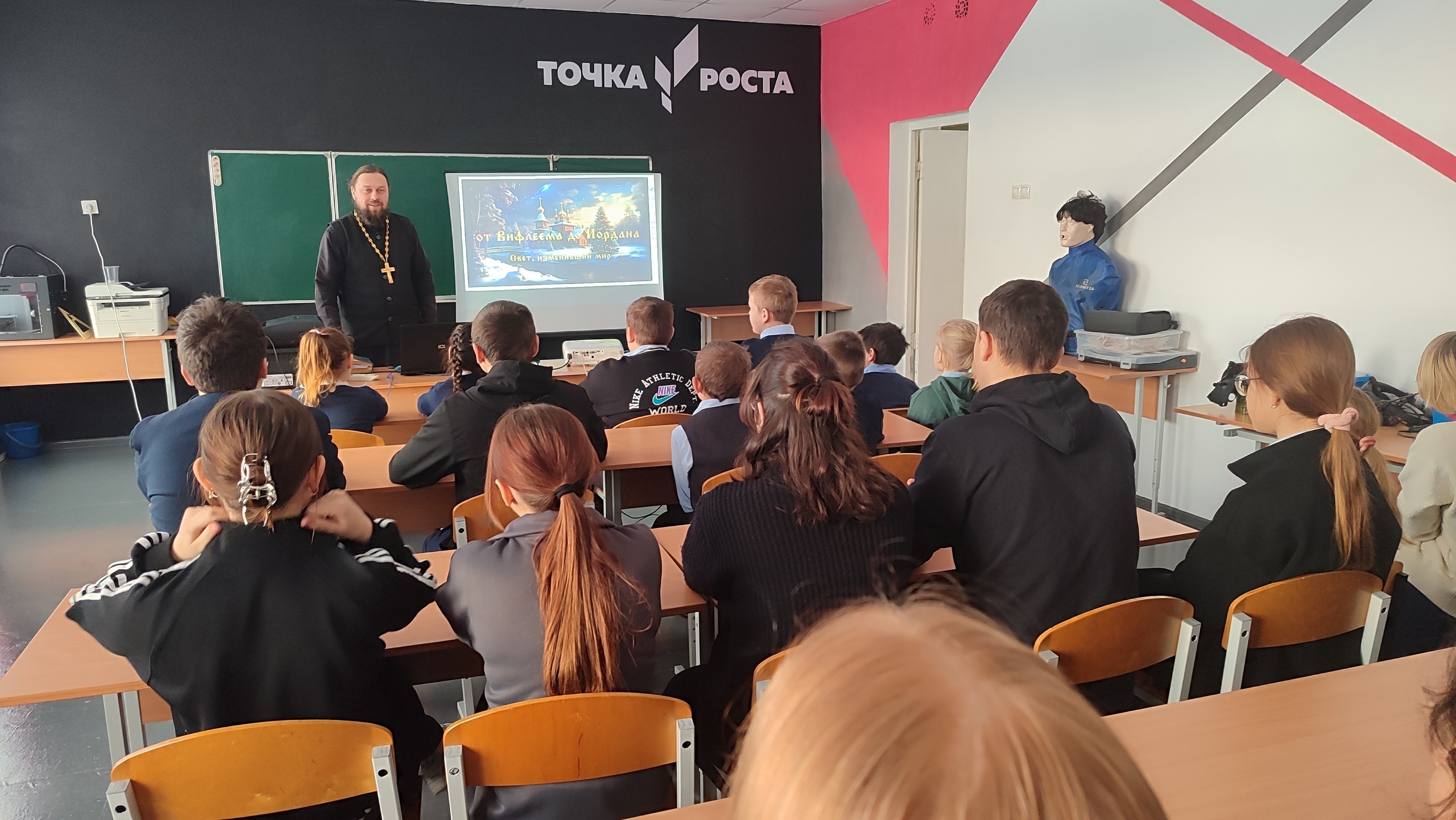 Отец Максим с теплотой и увлечением рассказал о Рождестве Христовом – празднике, который знаменует собой рождение Спасителя и несет в себе весть о любви, надежде и мире. Он поделился историями о том, как этот праздник отмечается в православной традиции, о его значении для каждого верующего человека. Ребята с неподдельным интересом смотрели фильм о Вифлеемской звезде, о яслях, в которых родился Младенец Иисус, и о тех ценностях, которые несет с собой этот светлый день.